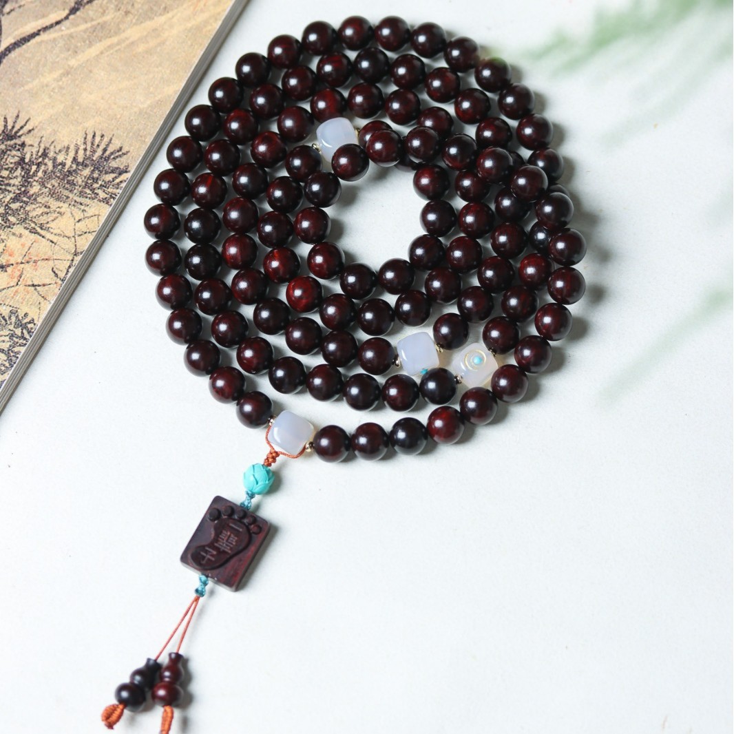 Eighty-Nine Percent of the Time, Never Leave Each Other, Couple Bracelet, Indian Small Leaf Red Sandalwood 108 DIY Neck Hanging Rosary Beads for Men and Women