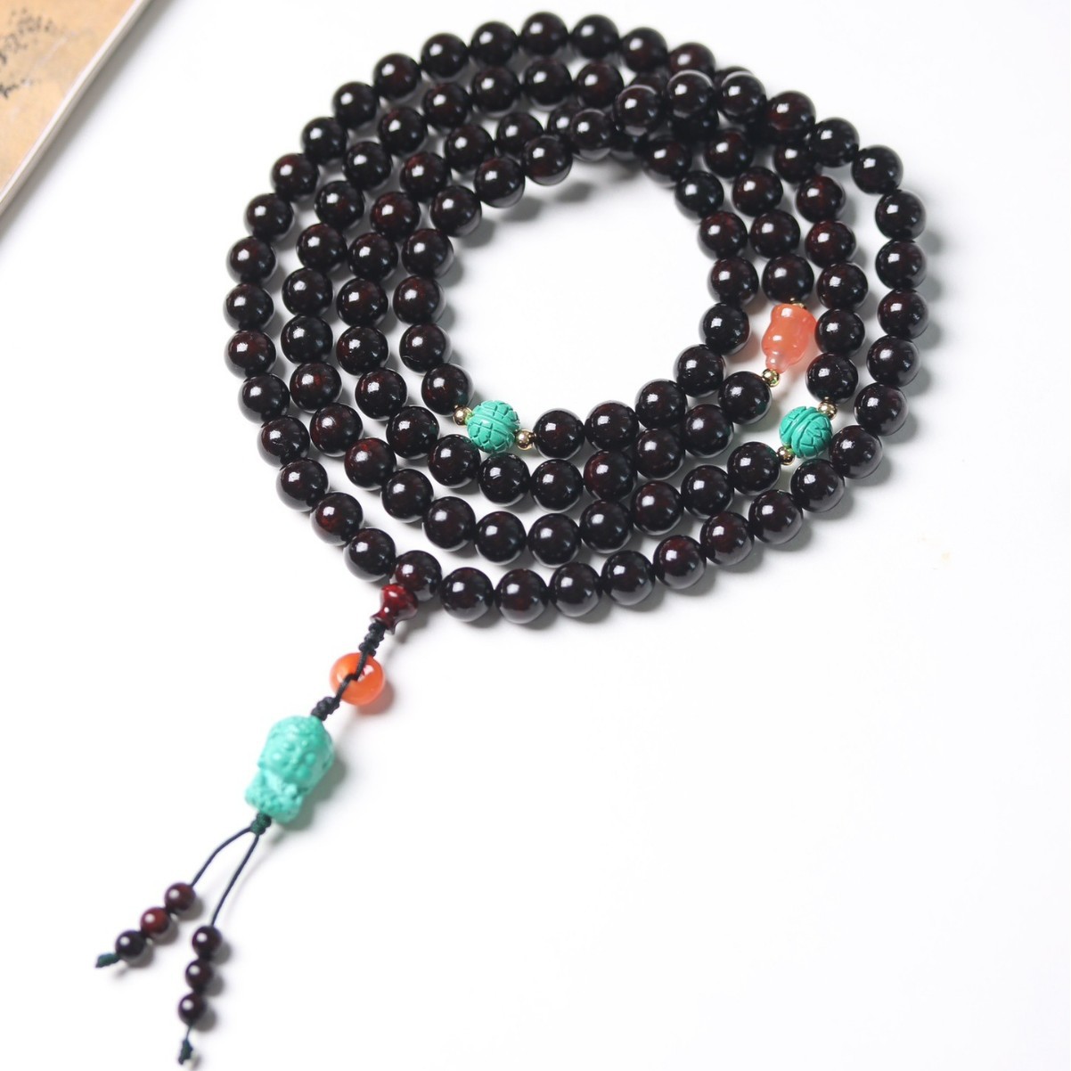 Dum Model · Natural Indian Small Leaf Red Sandalwood 108 Beads Bracelet DIY Handmade Women's Red Sandalwood Prayer Beads Buddhist Beads