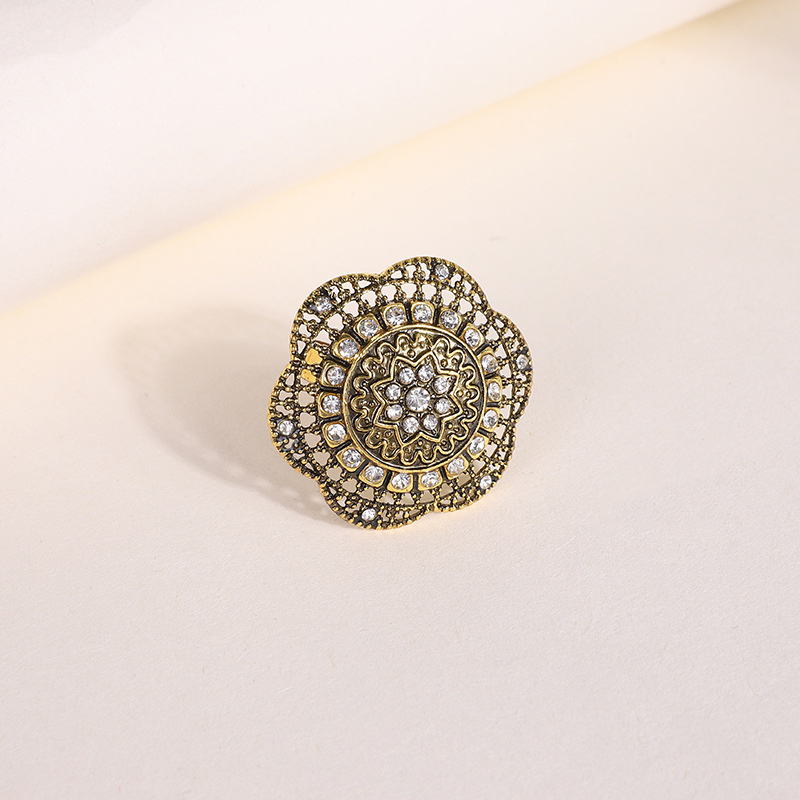 Exquisite Indian flower multi-layer three-dimensional European and American round hollow retro ethnic style exaggerated big ring Indian dance racket