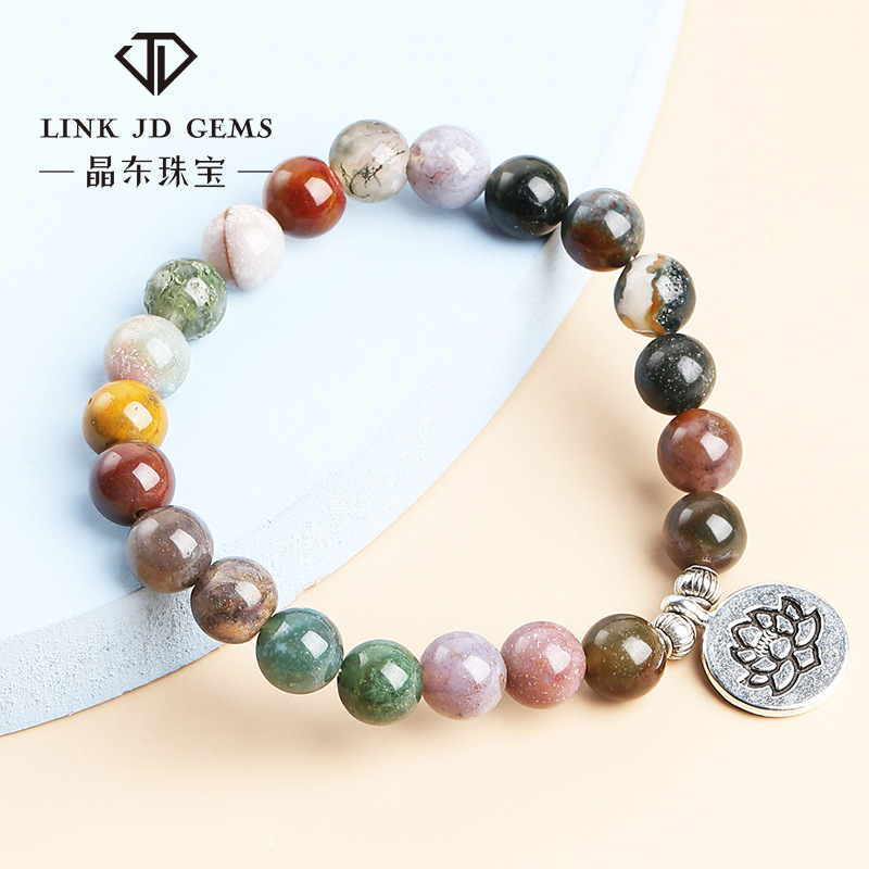 Jingdong Jewelry India Agate Yoga Lotus Pendant Bracelet Simple Fashion Single Circle Round Bead Bracelet Factory Wholesale