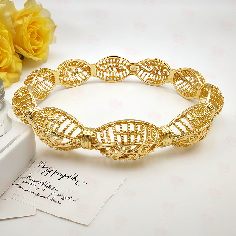 Cross-border Middle East Copper Plated 24K Gold Bracelet Africa India Dubai Bride Wedding Hollow Eye Bracelet Wholesale