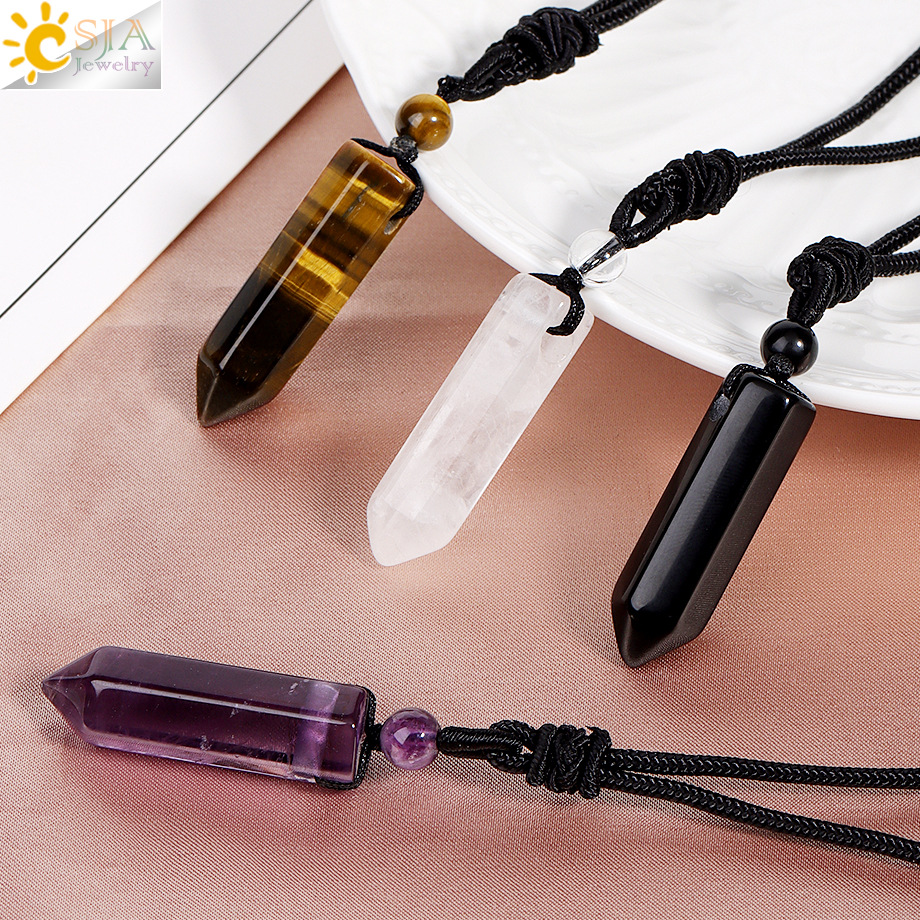 Cross-border fashion jewelry wholesale natural crystal obsidian powder crystal hexagonal pendant necklace for men and women couples
