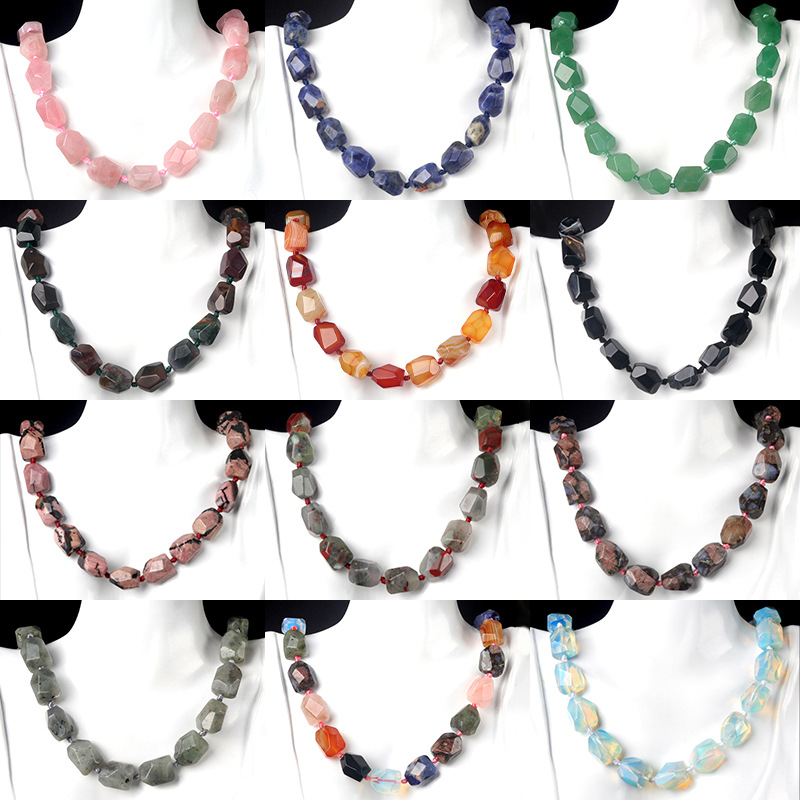 1732-Natural stone necklace semi-precious stone irregular with shape cut surface Tower knot necklace