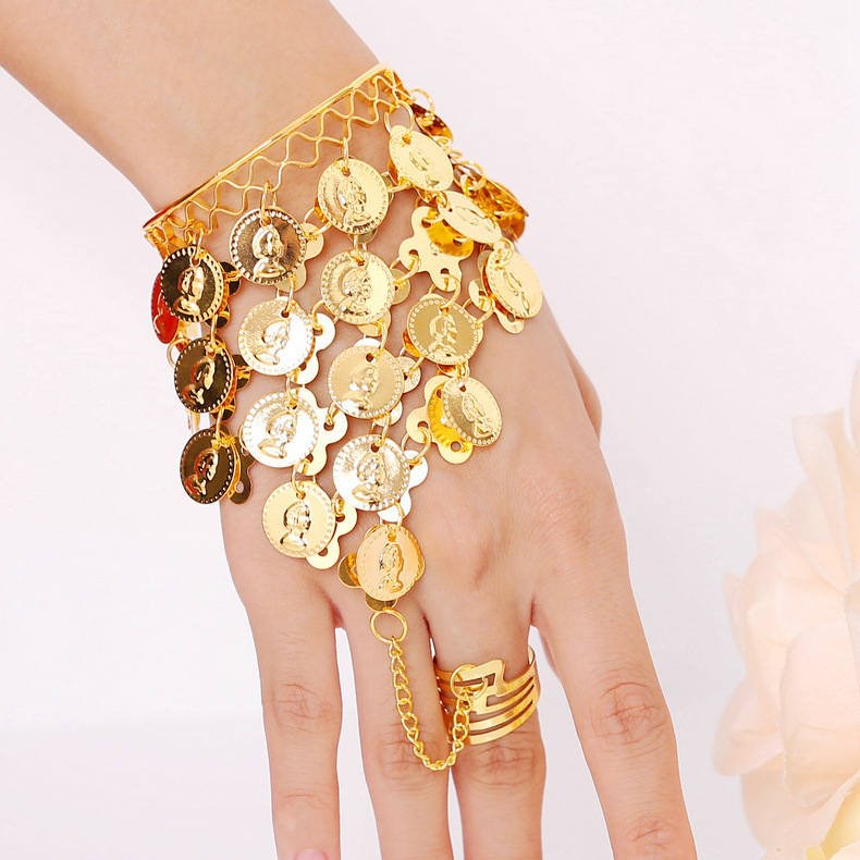 Exotic Ethnic Style Coin Bracelet Indian Dance Performance Costume Jewelry Accessories Gold Disc Ring Bracelet