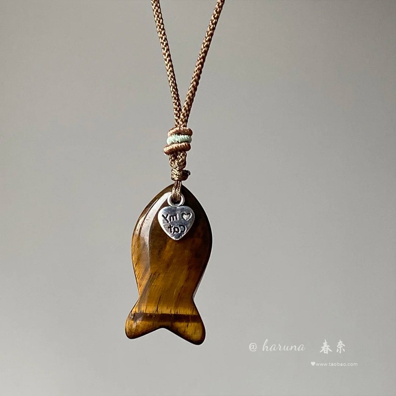 Cat's Small Dried Fish ~ Natural Tiger Eye Stone Small Fish Pendant Long Necklace Second-Hand Niche High-End Sweater Chain
