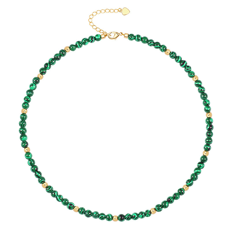 Amazon New 4mm Malachite Necklace Bohemian Turquoise Beaded Fine Necklace Women's Clavicle Chain