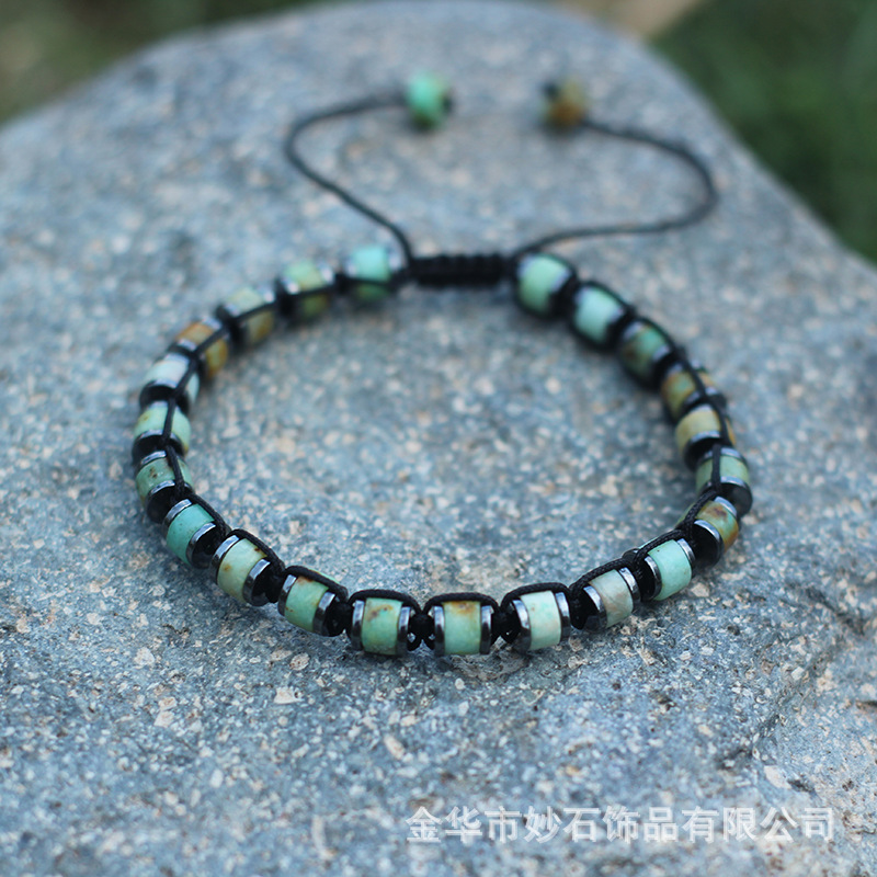 Cross-Border Natural Stone Amazon Blue Turquoise Men's Braided Bracelet European and American Retro Classy V Ouxia Bracelet