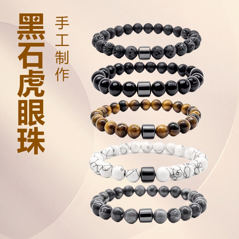 Amazon's New Cross-Border Hot Selling Black Stone Tiger Eye Beads Bracelet Stone Bracelet Magnet Spot Wholesale Agate Jewelry