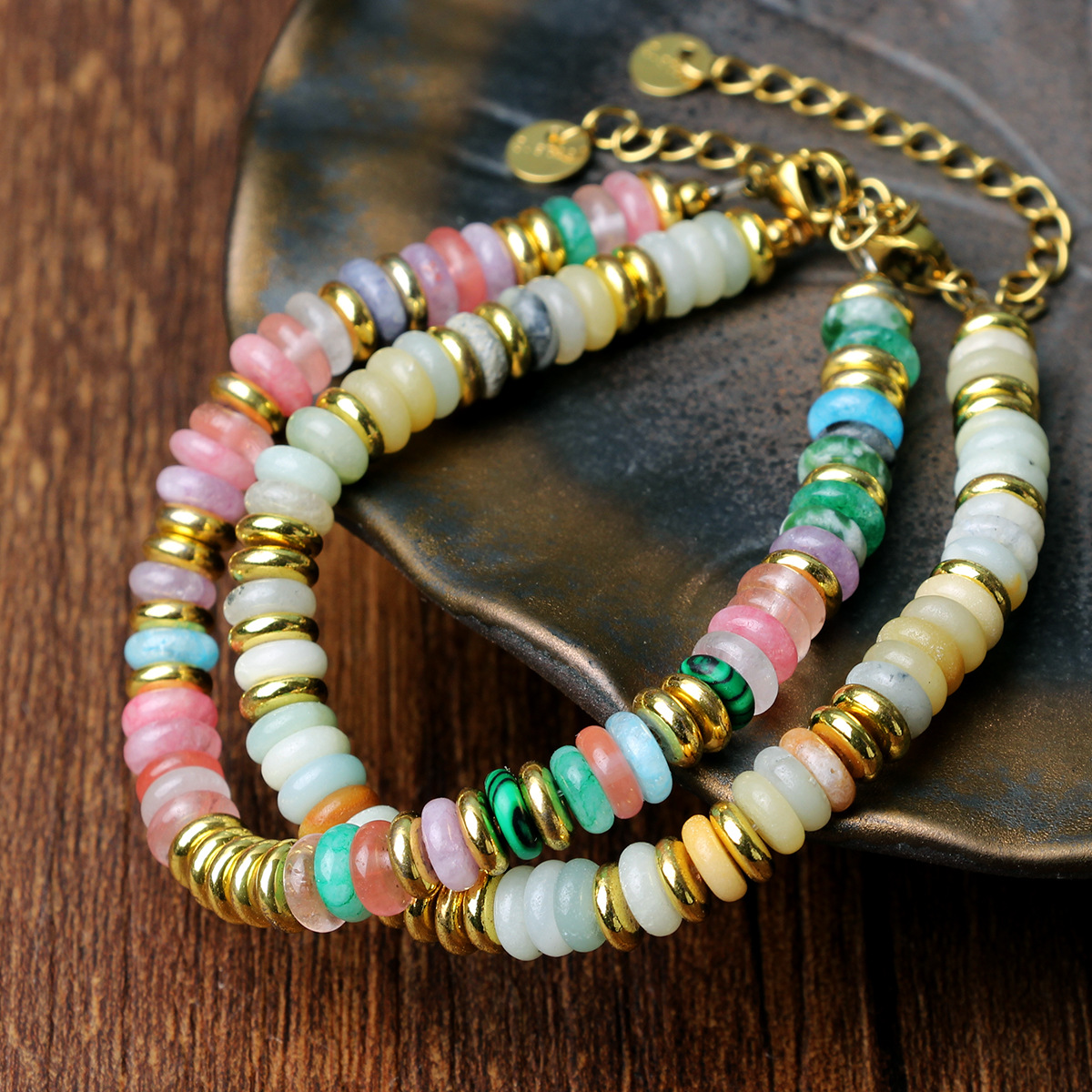 European and American Cross-Border Hot-Selling New Bohemian Style Colorful Natural Stone Bead String Bracelet Women's Jewelry Factory Direct Sale