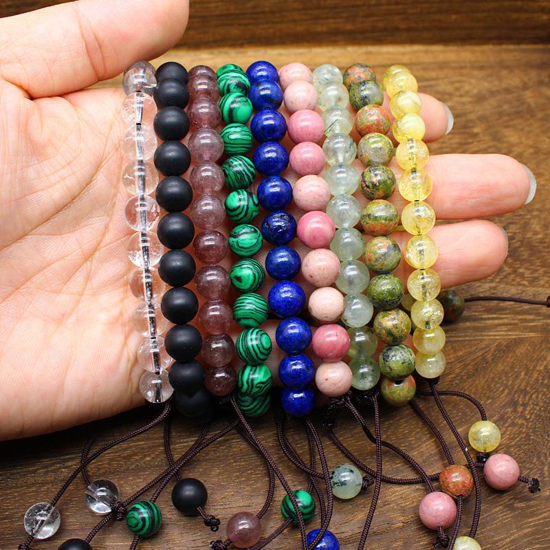 Natural Stone Beads Woven Bracelet Men's European and American Cross-border Hot Selling 8mm Beads Drawstring Simple for Men and Women