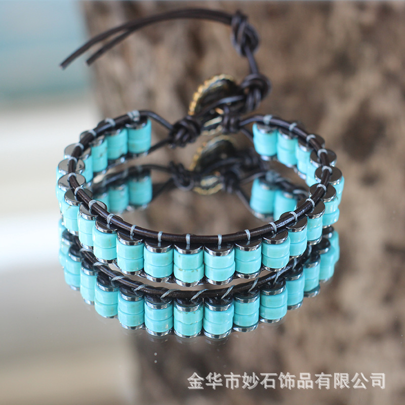 Amazon's New Turquoise Natural Stone Bracelet Cross-Border Bohemian Style Retro Cowhide Rope Braided Bracelet