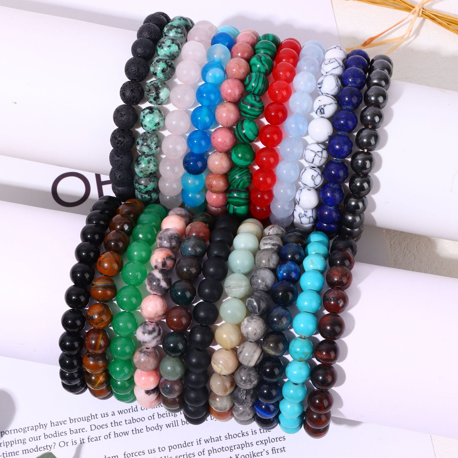 European and American Cross-Border Hot-Selling Popular Jewelry 8mm Natural Stone Bracelet Amethyst Tiger Eye Stone Agate Bracelet Jewelry