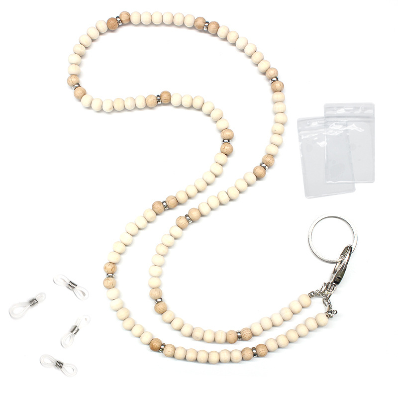 Women's Cross-border Certificate Necklace Agate Amazon Beaded Jewelry Key Work Certificate Powder Crystal Wooden Beads Lanyard Necklace