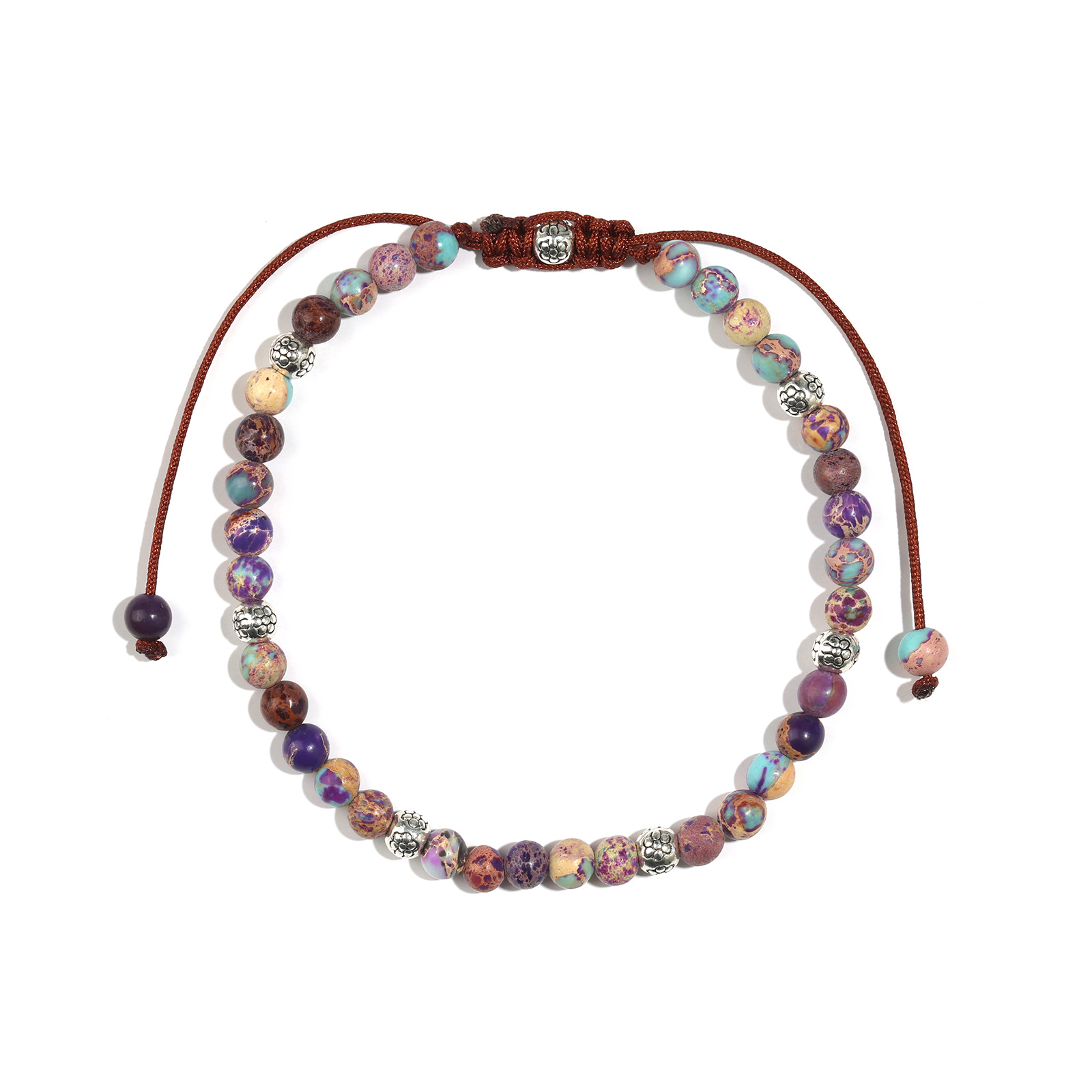 Natural Stone Yoga Bracelet 4MM Tiger Eye silver Bead Spacer Friendship Bracelet Lady Emperor Stone Woven Bracelet