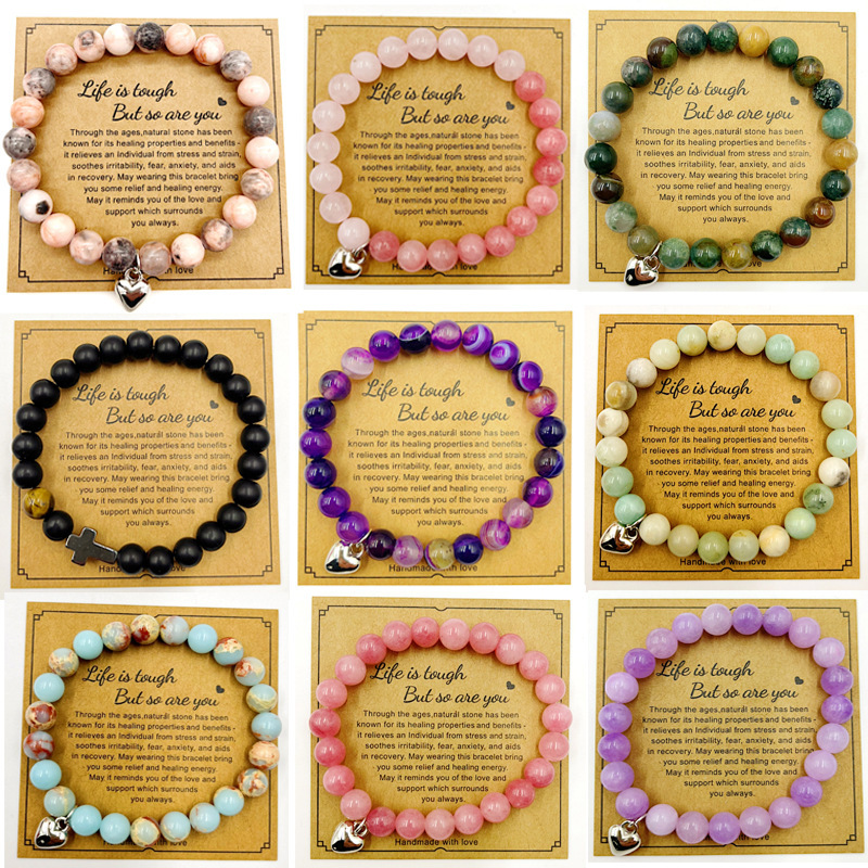 Natural stone bracelet 8mm round beads gem bracelet men's and women's crystal agate elastic beaded bracelet European and American cross-border