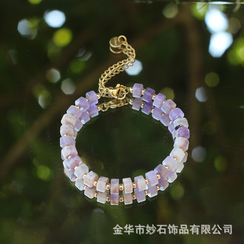 Cross-Border Hot Selling Natural Amethyst Bracelet European and American Fashion Ladies Crystal Stainless Steel Lobster Clasp Adjustable Jewelry