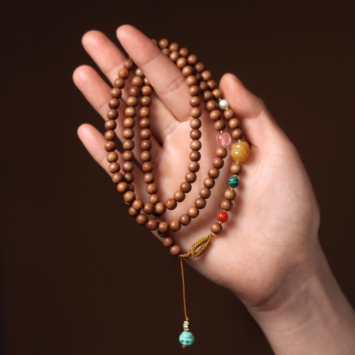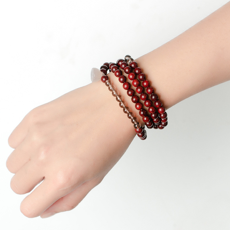 India Laoshan sandalwood 6mm108 original design female multi-circle Buddha beads Wenwan bracelet with green pine beeswax South Red