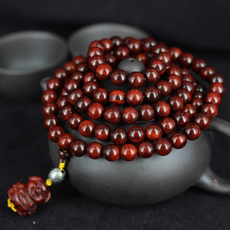 Indian Old Gold Star small leaf Rosewood bracelet 0.8 men and women sandalwood beads 108 bracelet lucky pig style