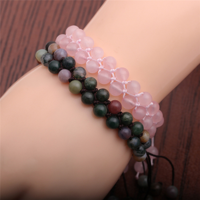 6mm Indian agate powder Crystal double-row bracelet European and American semi-precious stone cut agate woven winding bracelet for women