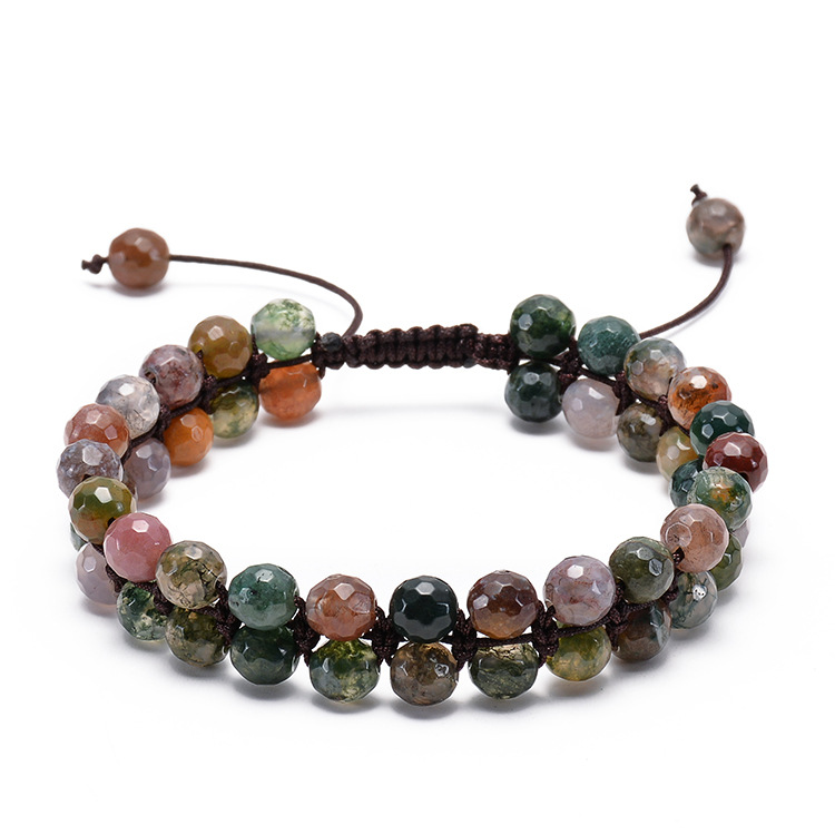 Amazon hot sale 6mm Indian agate double row bracelet natural cut agate hand-woven winding bracelet