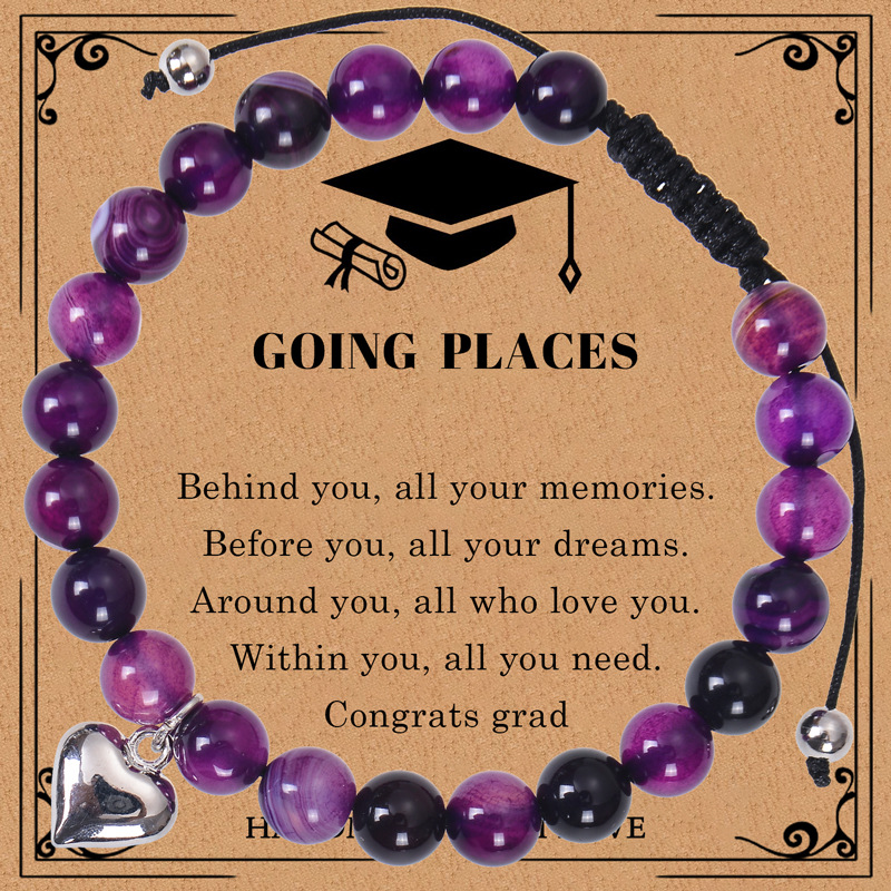 Creative Graduation Season Bracelet Crystal Agate Stone Bracelet Peach Heart Pendant Natural Stone Woven Bracelet Card Jewelry