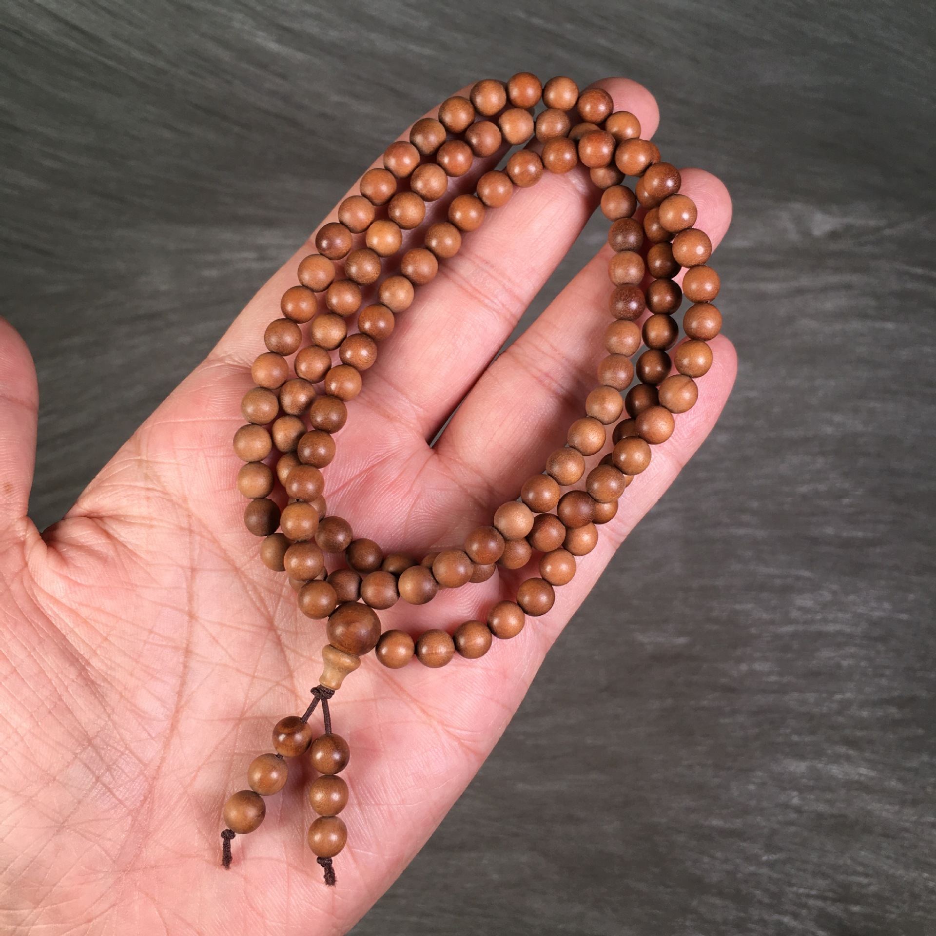 India Laoshan sandalwood 5/6 old barrel beads 108 girls bracelet old material horizontal pattern black flesh submerged tiger leather pattern Buddha beads