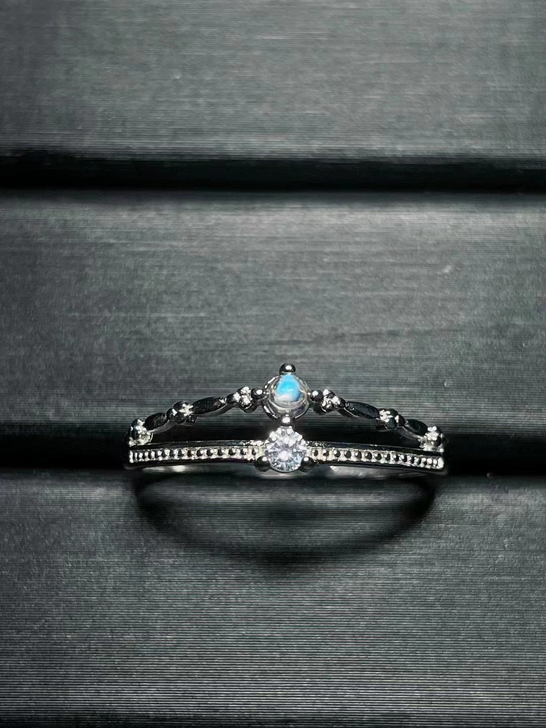 Pure Natural Indian Moonstone S925 Sterling Silver Ring for Women, Vintage Simple Style, Elegant and Graceful Open Ring with Pearls
