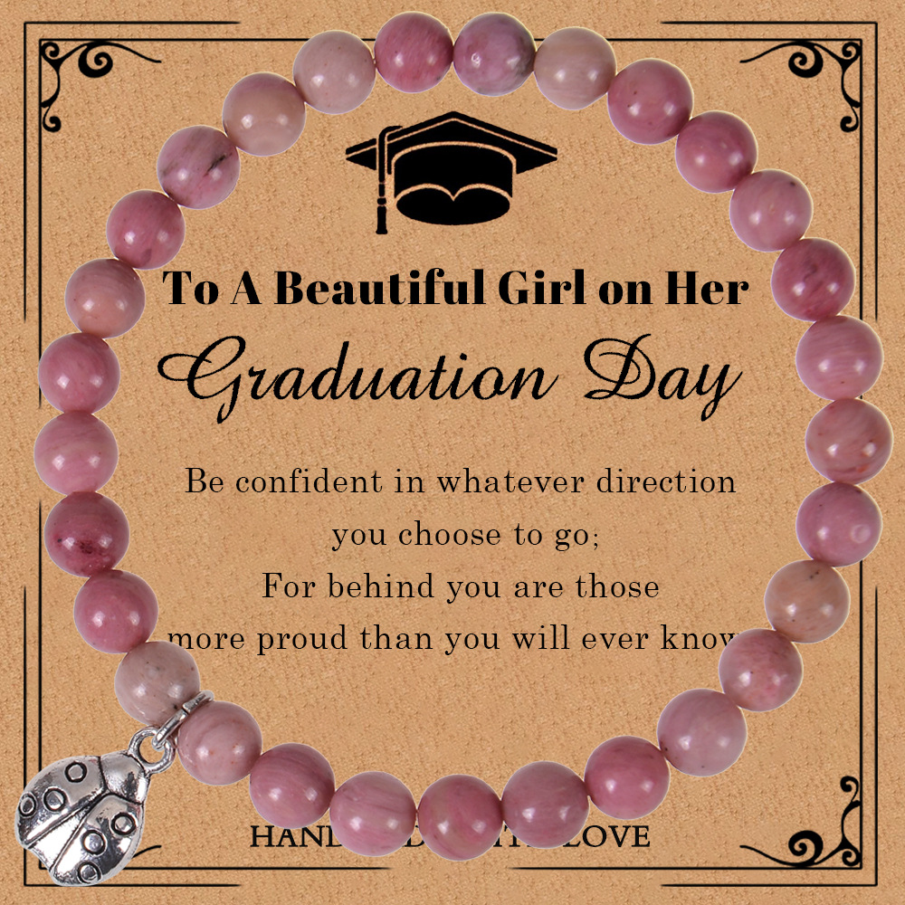 2023 Graduation Season Bracelet Natural Stone Agate Bracelet Coccinella septempunctata pendant elastic rope bracelet card gift