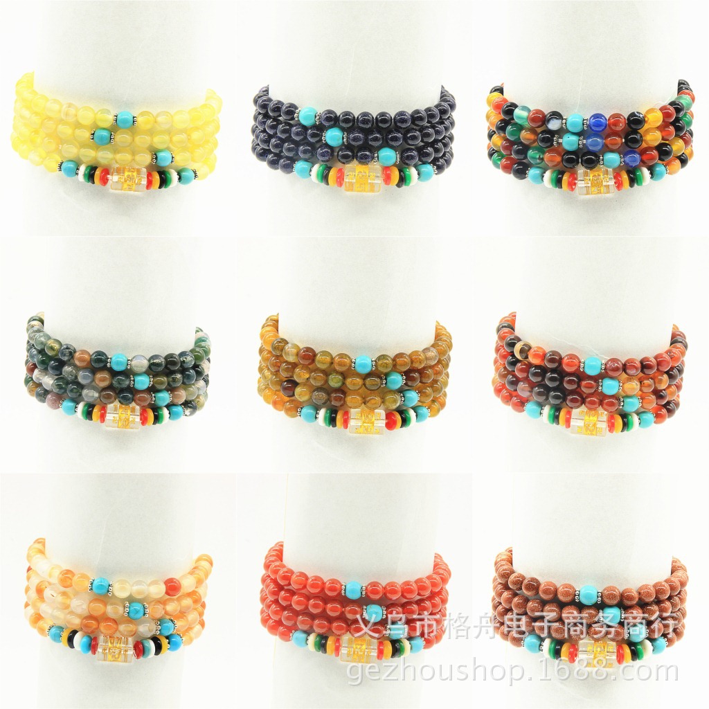 Crystal 108 multi-circle six-character mantra beads bracelet red black agate blue sand chalcedony Tiger Eye bracelet