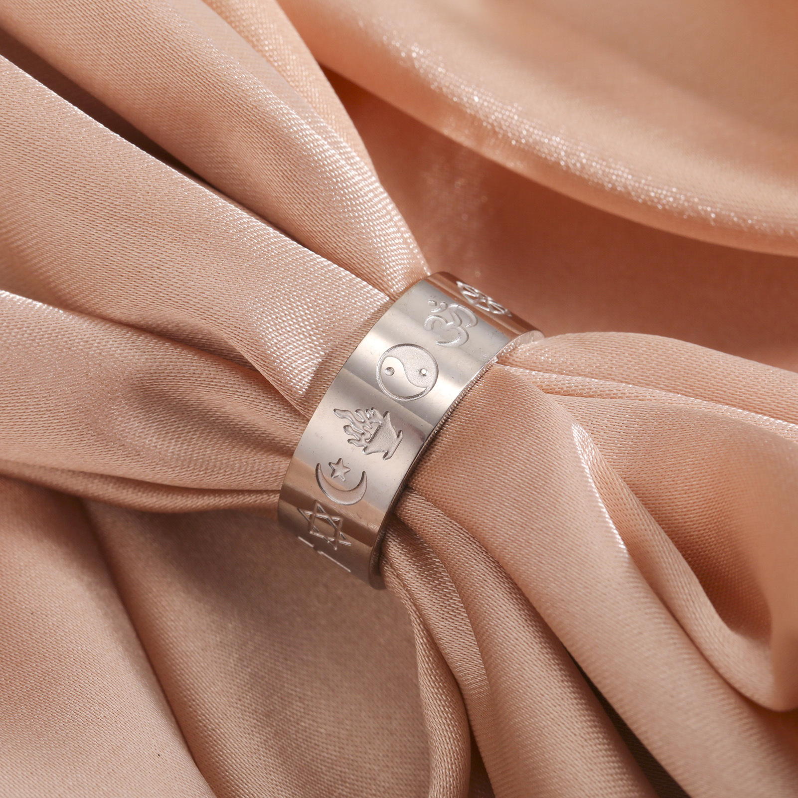 Foreign Trade Export Hot-Selling Couple Style Bagua Xingyue Cross Indian Stylish 8mm Wide Stainless Steel Ring