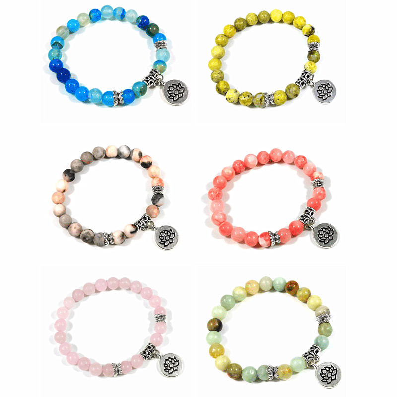 European and American cross-border pink crystal lotus pendant bracelet natural stone powder zebra beaded bracelet bohemian style bracelet