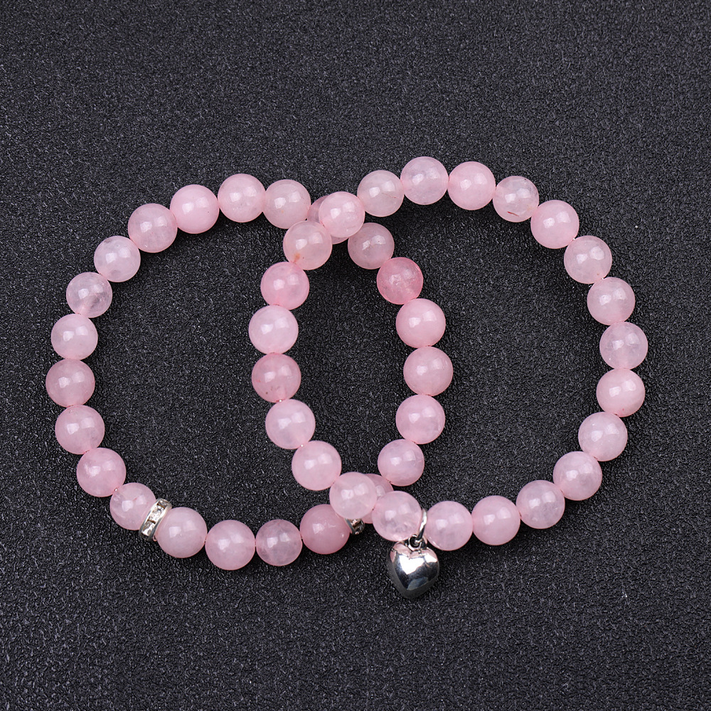 Small peach heart pendant micro diamond pink chalcedony striped purple agate painting Stone Blue aventurine black line red pattern suit bracelet