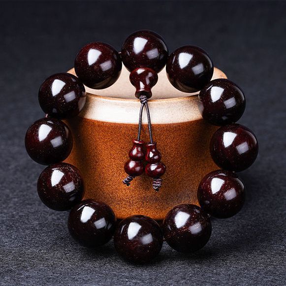 Collectible Authentic Natural Indian Venus Small Leaf Red Sandalwood Bracelet 20mm 12 Beads Men's Old Material Buddha Bead Bracelet