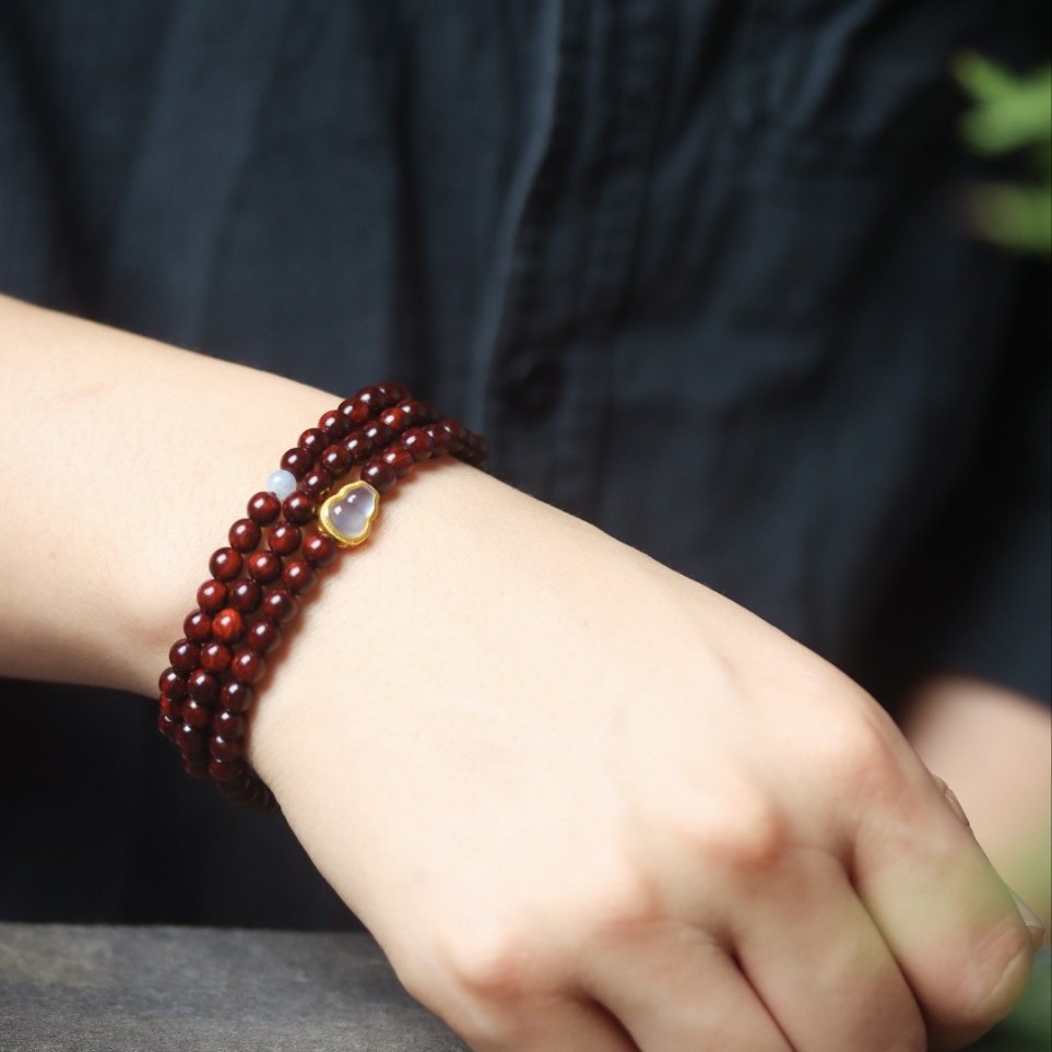 Indian Small-Leaf Red Sandalwood Multi-Circle Wooden Bracelet Round Beads 5mm DIY Original Design Simple Chinese Style Animal Year Gift