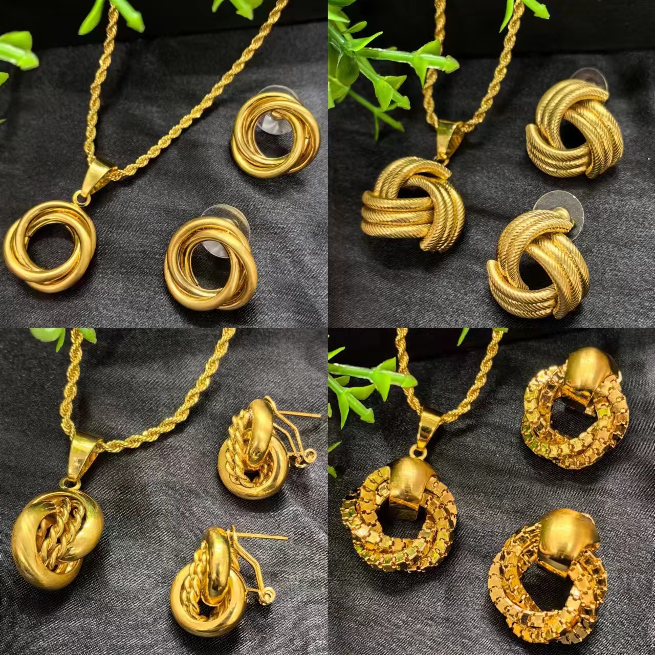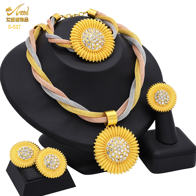 24K Gold-Plated Jewelry Three-Color Necklace Earrings Ring Bracelet Middle Eastern Indian Women's Jewelry Four-Piece Set Wholesale