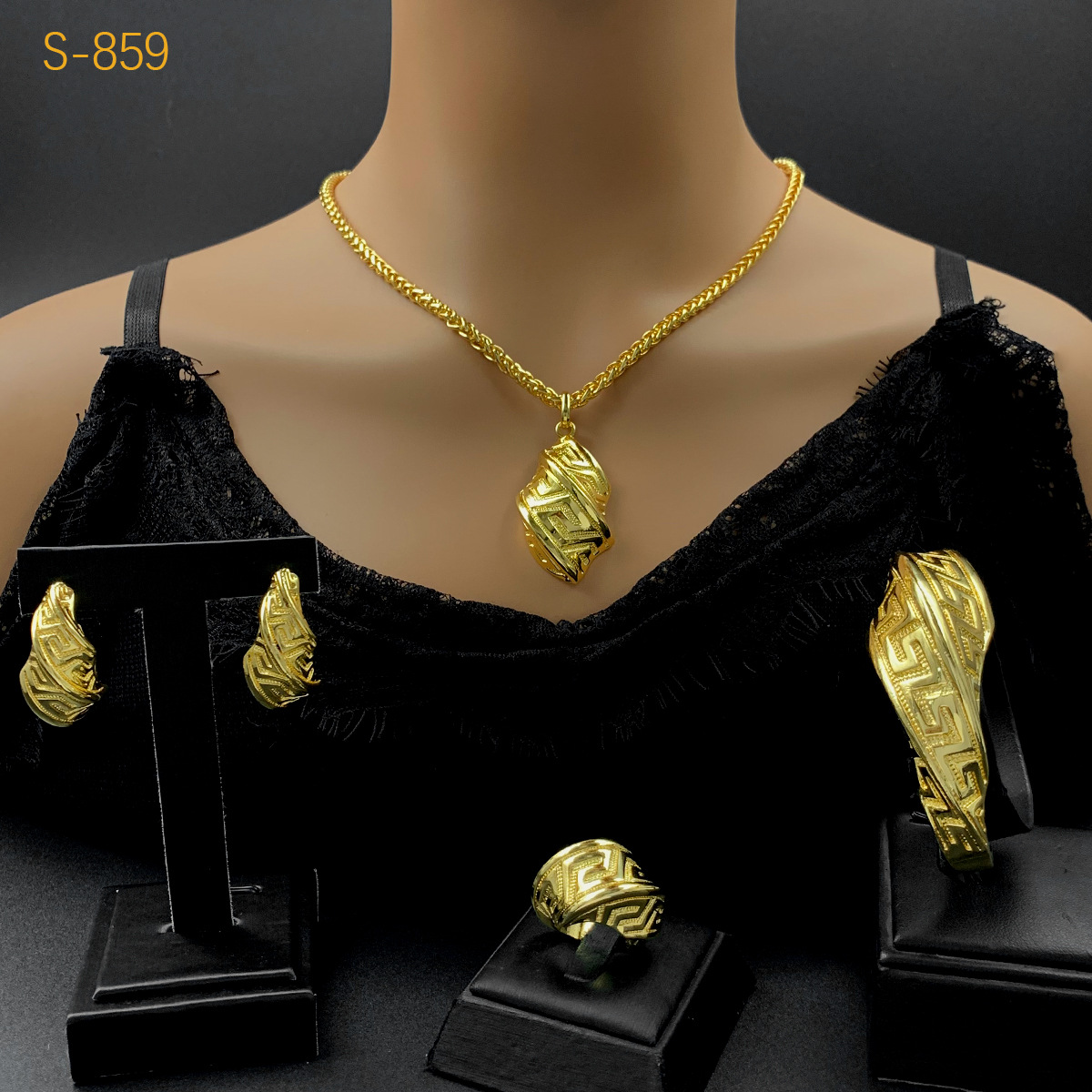 Cross Border Pendant Jewelry Four-piece Set Dubai India Women Necklace Bracelet Earrings Ring Jewelry Set