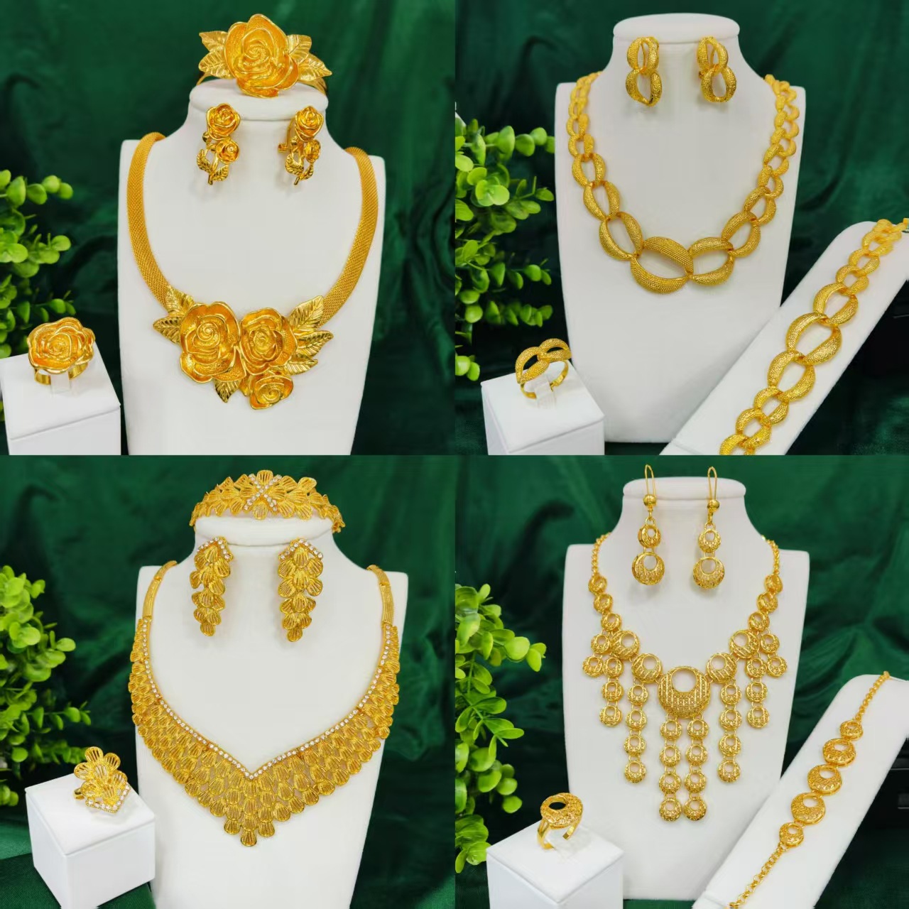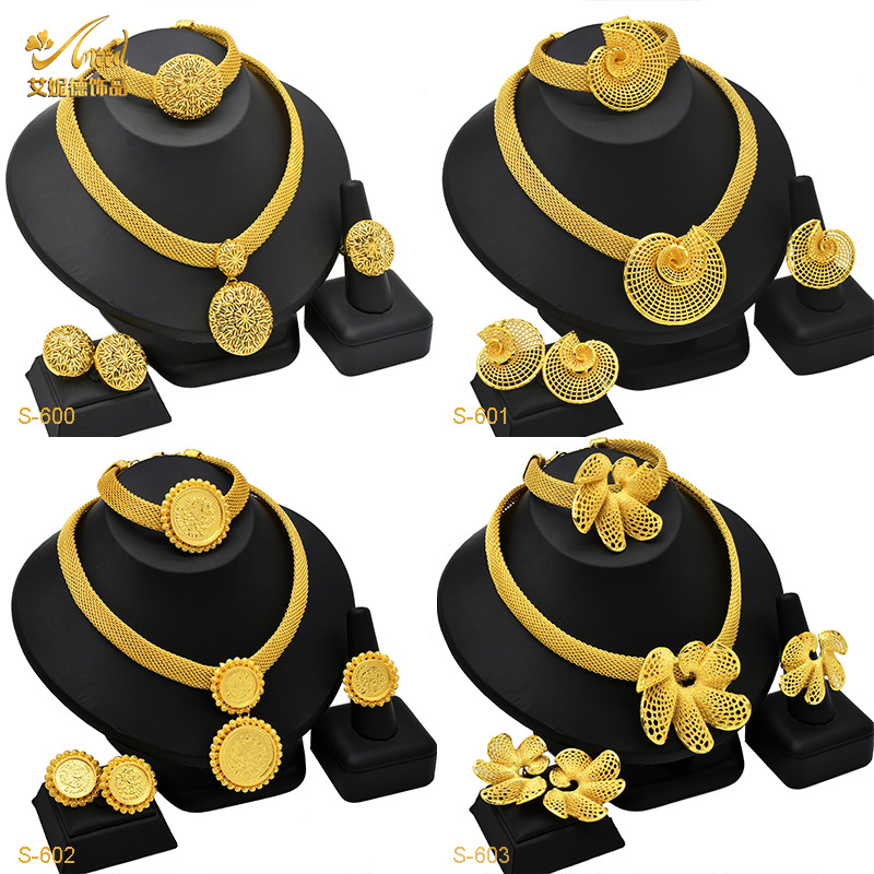 Middle East Dubai Hot Selling Fashion Jewelry suit India Bride Wedding Necklace Earrings Bracelet Ring Jewelry Wholesale