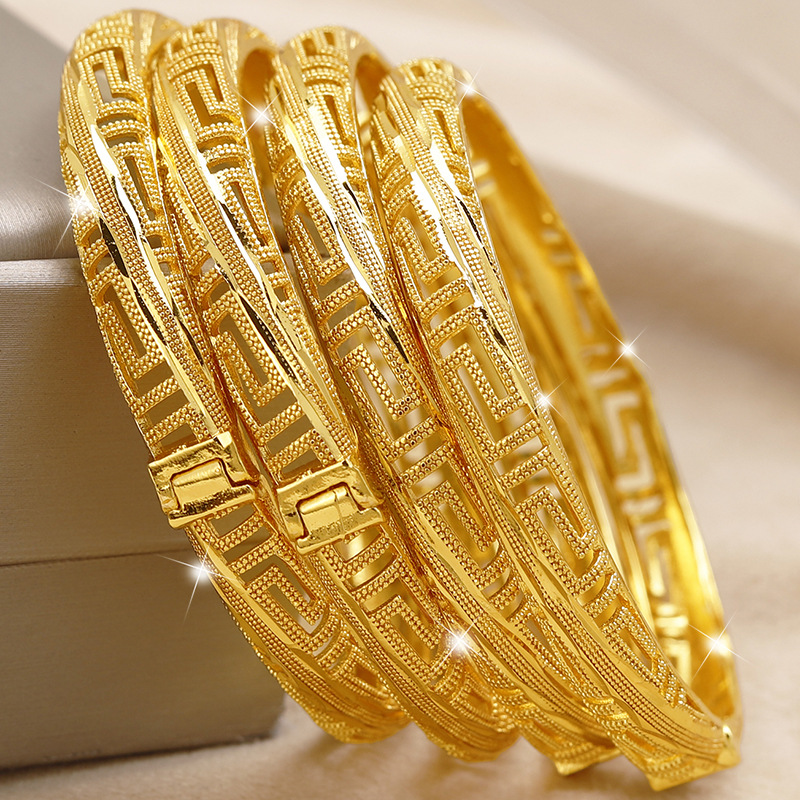 Cross-Border Thai 24K Gold-Plated Bracelets Indian Bridal Wedding Jewelry Gold Bracelets Middle Eastern Women's Bracelets Wholesale