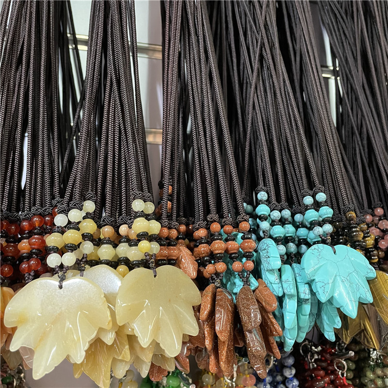 Braided Natural Crystal Agate Carved Maple Leaf Necklace Ethnic Style Men's and Women's Sweater Chain Braided Jade Necklace Cross-Border