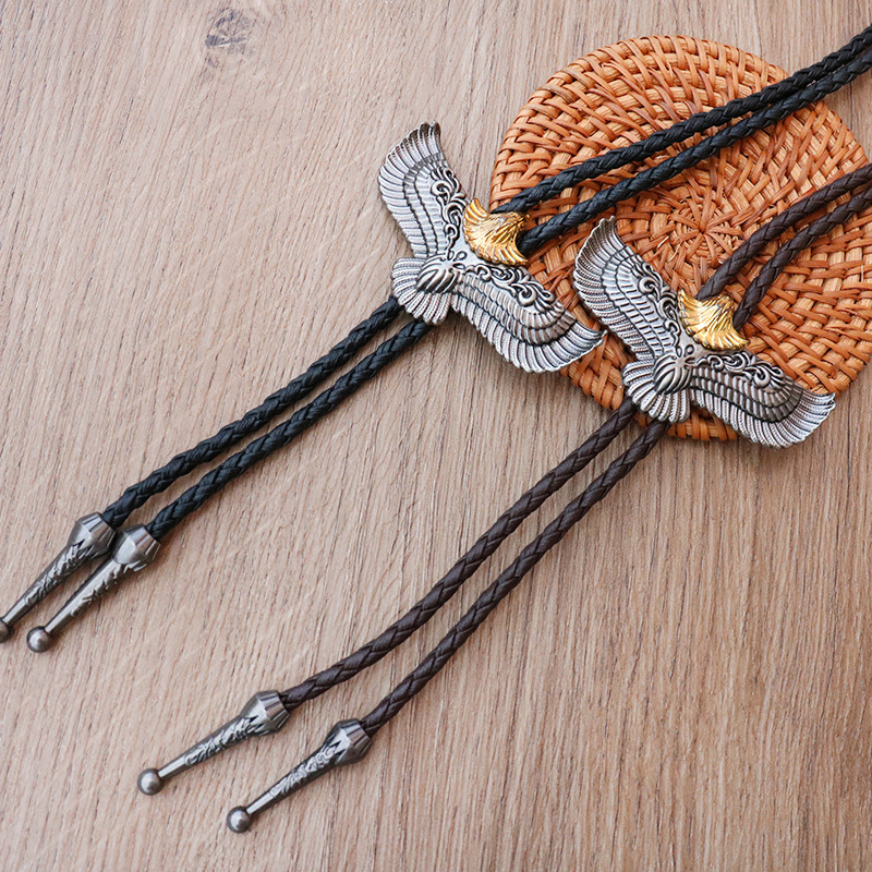 Indian Style Eagle Pendant Long Bolo Tie Jewelry Sweater Chain Retro Braided Bow Tie Eagle Necklace Accessories