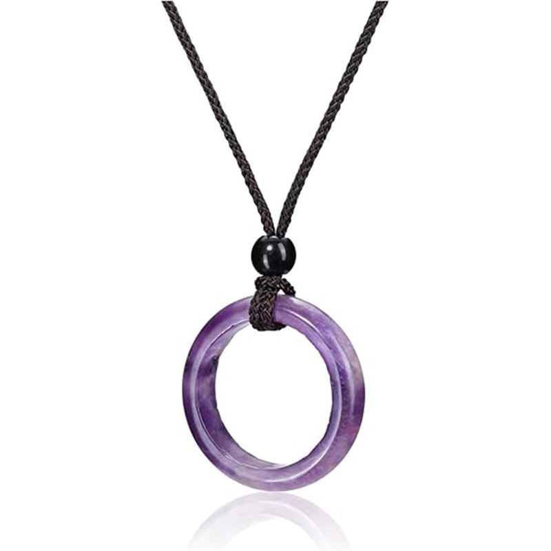 Natural Stone Crystal Ring Necklace Women Ring Pendant Necklace Ring Clavicle Chain Simple Necklace Jewelry Gift