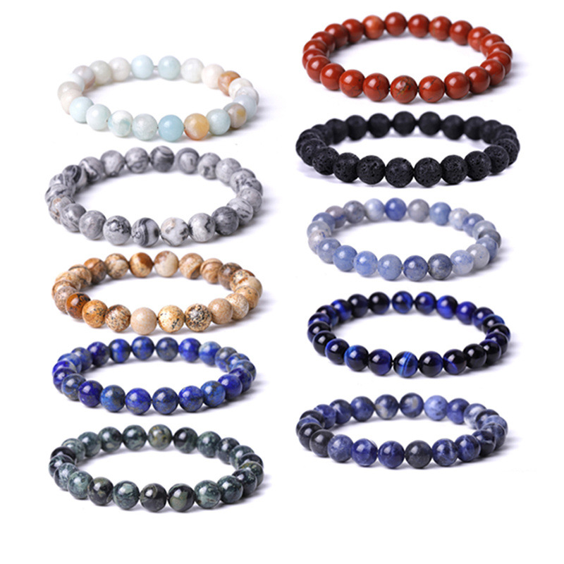 Cross-border Couple Bracelet 8mm Single Circle Bead Bracelet Blue Dongling Tiger Eye Natural Lapis Lazuli Powder Crystal Bracelet