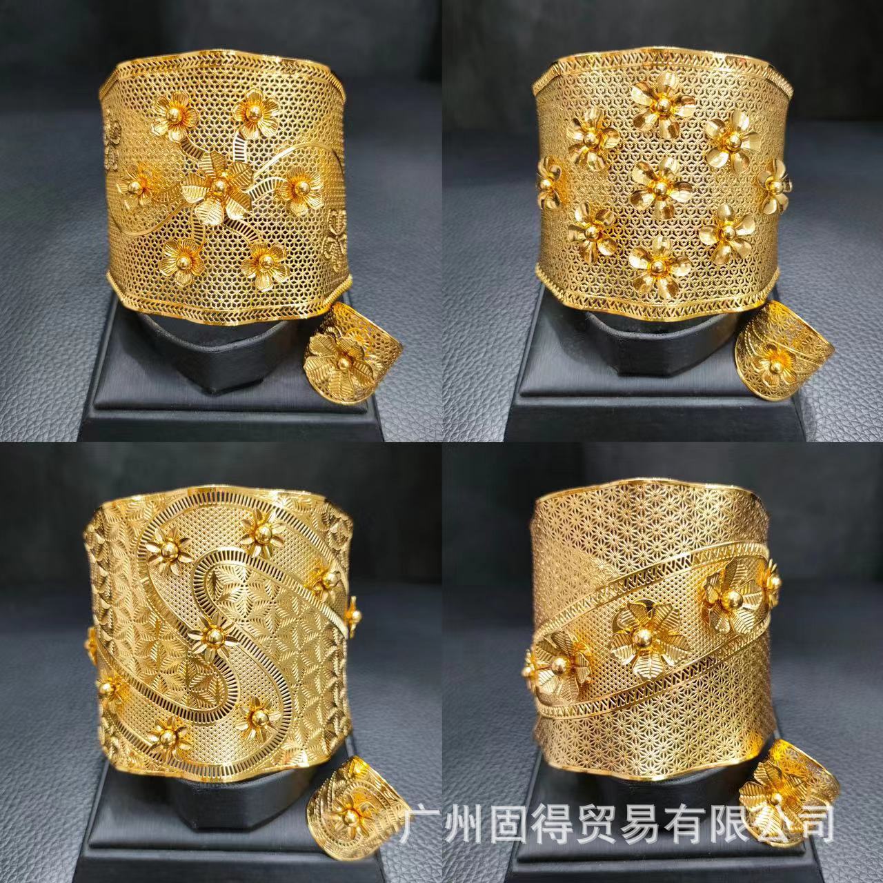 Middle East Dubai Jewelry Wide Bracelet Ring Jewelry Set Indian African Bridal Bracelet Wedding Banquet Gift