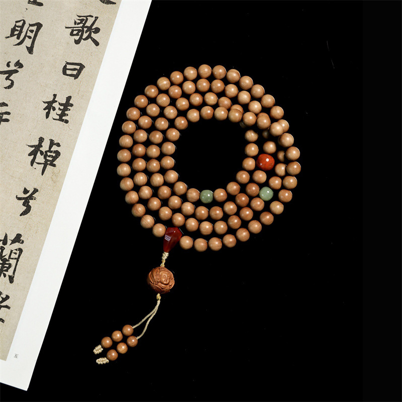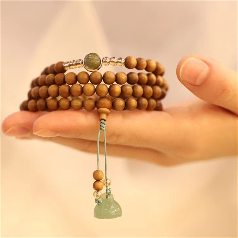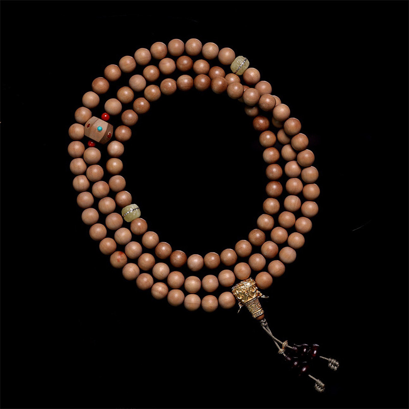 Old sandalwood 108 round bead bracelet original DIY sandalwood beads beads bracelet text play men's and women's jewelry wholesale