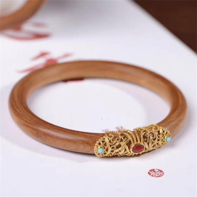 India old mountain sandalwood inlaid sterling silver plated bracelet fashion temperament auspicious bracelet old sandalwood women's bracelet wholesale