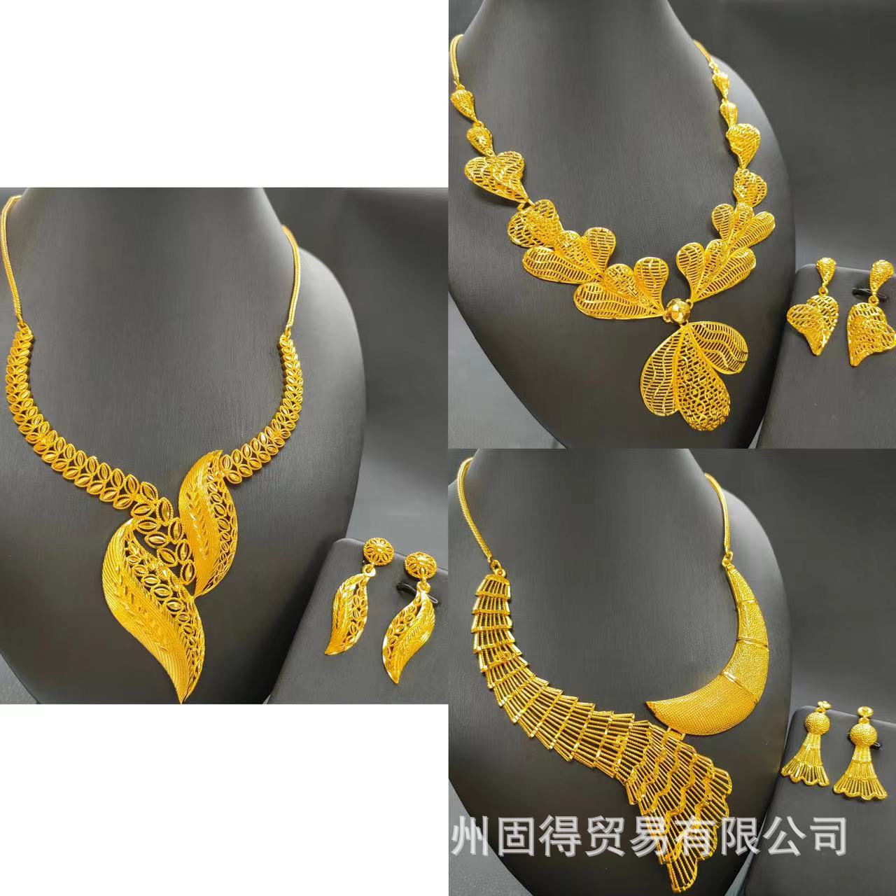 Vietnam Sand Gold Necklace Earrings Set Dubai Dubai India Nigeria Brass Gold Plated Women Wedding Jewelry
