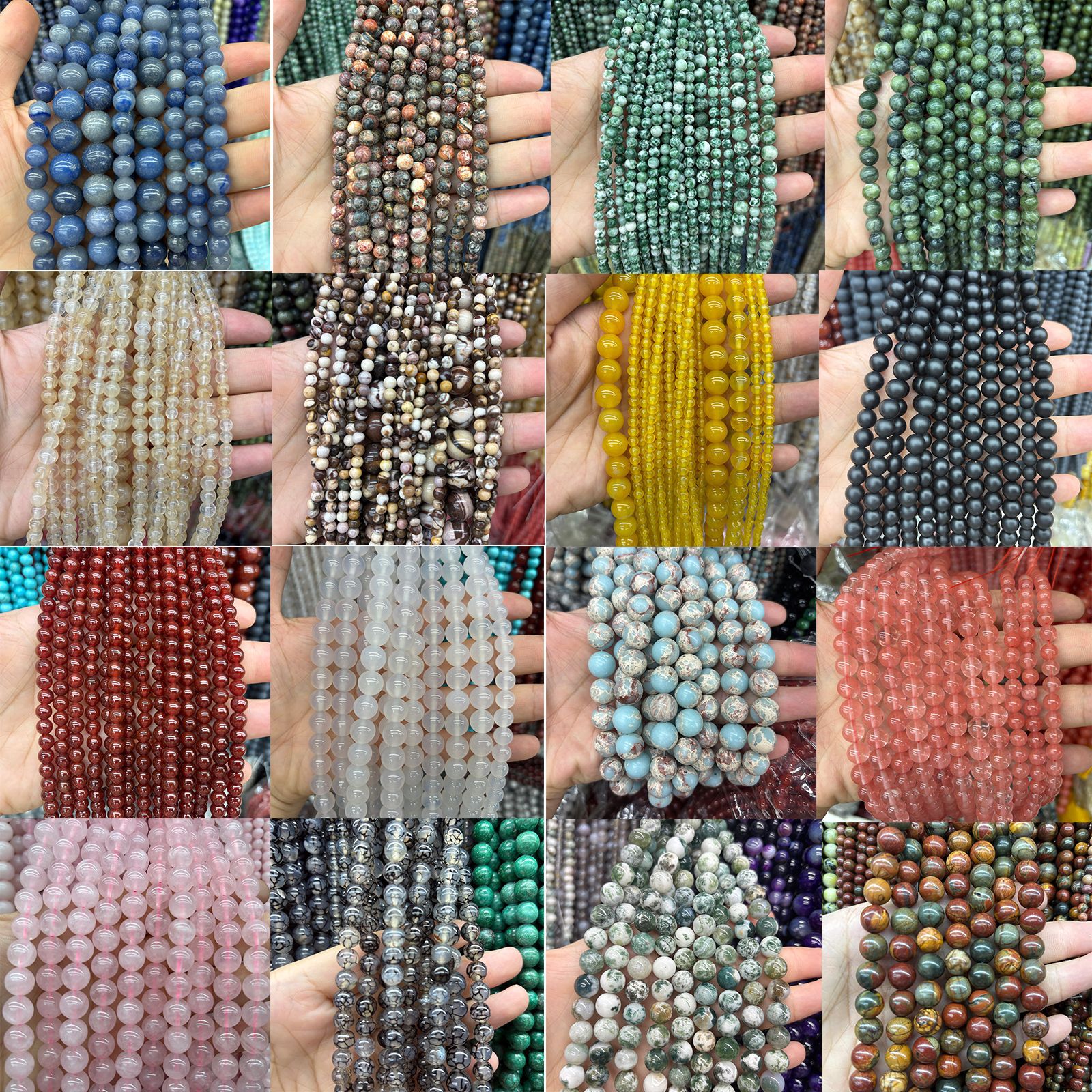 Collection of Natural Stone Crystal Chalcedony Loose Beads DIY Handmade Beaded Round Beads for Bracelets and Necklaces Spacer Beads