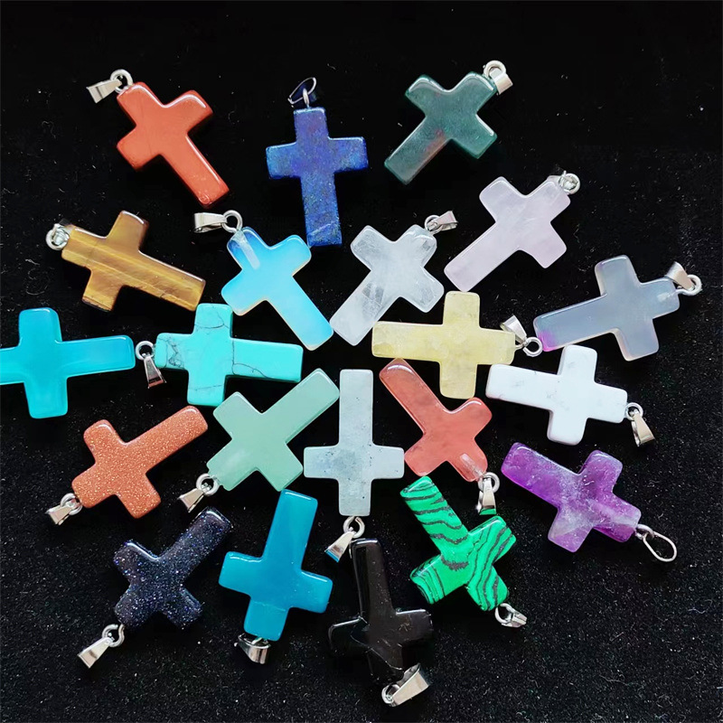 Cross Border Natural Stone Amethyst Cross Pendant European and American Fashion Cross Necklace diy Accessories Necklace