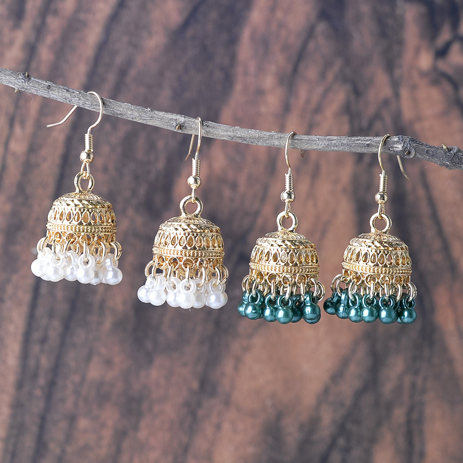 Retro Indian Classic Tassel Small Bead Pendant Earrings Ethnic Exotic Style Exaggerated Earrings Jewelry for Women