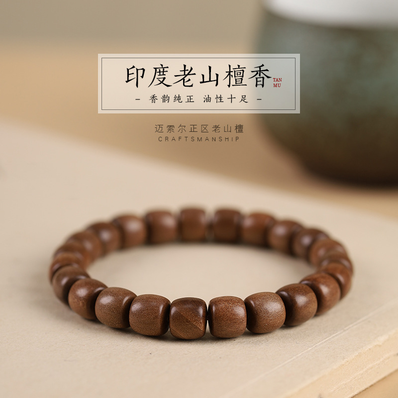 Natural Partial Indian Laoshan Sandalwood Rosary Bracelet High Oil High Density Men and Women Retro Cultural Toy Plain Ring Bracelet
